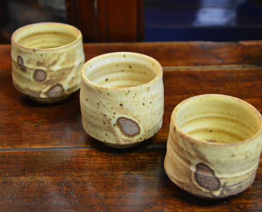 Yellow Fingerprint Stoneware Sake Cups - Set of 4