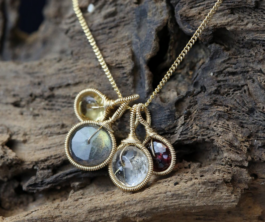 Garnet, Citrine, Labradorite & Rutilated Quartz Necklace